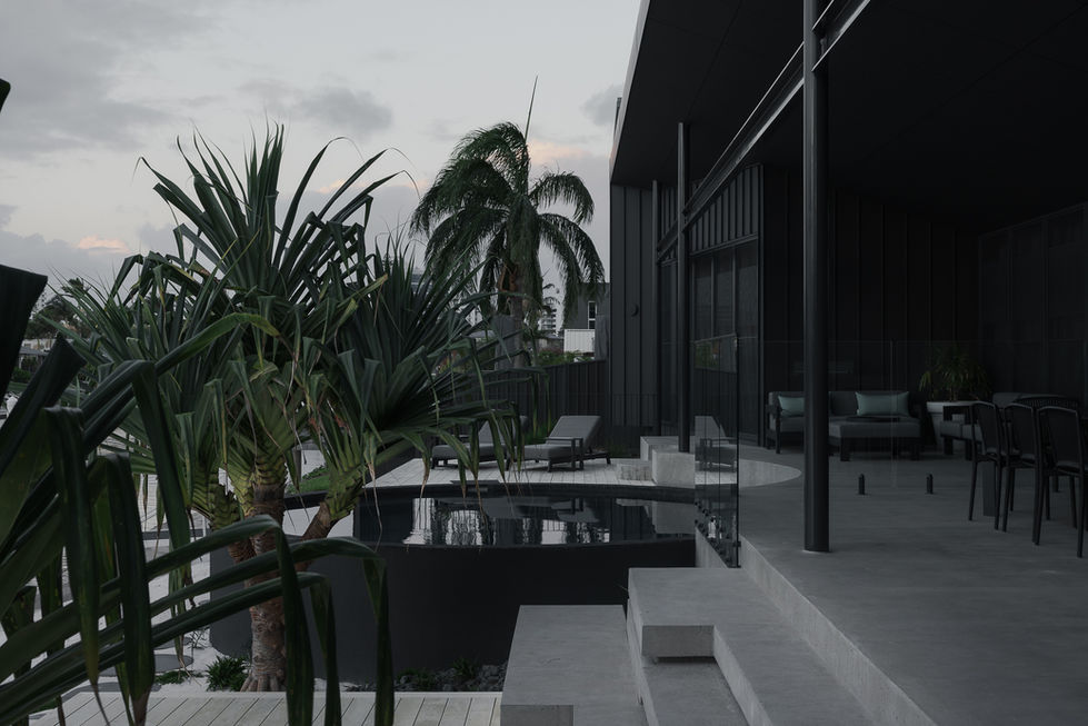 Set on a deep-water canal in Mooloolaba, the 0042 Residence was conceived as a sanctuary, private and guarded from the street, yet fully open to the calm of the water. The clients were clear that they didn’t want to engage with the street, a brief that led to the home’s bold concrete guard wall and secluded front courtyard for guest suites. From the outside, the design presents a quiet confidence; from within, it opens dramatically to the canal and its private-beach feel.