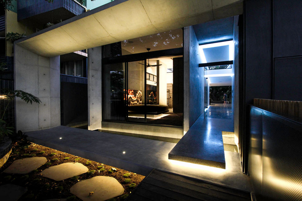 Though modest in size, the built home is rich in thought, detail, craft and specification. In deliberate contrast to the lightweight original cottage, the new architecture is grounded and permanent, anchored by extensive off-form concrete. Large volumes and frameless glazing capture the surrounding treescape, preserving the original connection to the land and the river. The interplay between solidity and transparency creates a calm, meditative living environment, a sanctuary within an increasingly urban context.